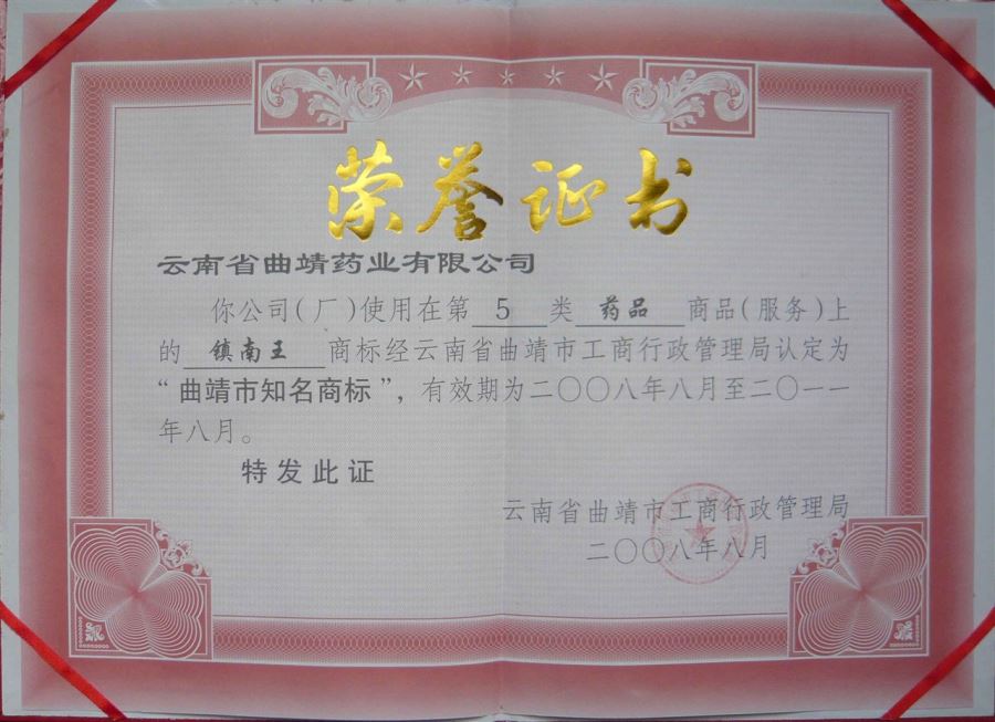 曲靖市知名商標(biāo)獎(jiǎng)牌